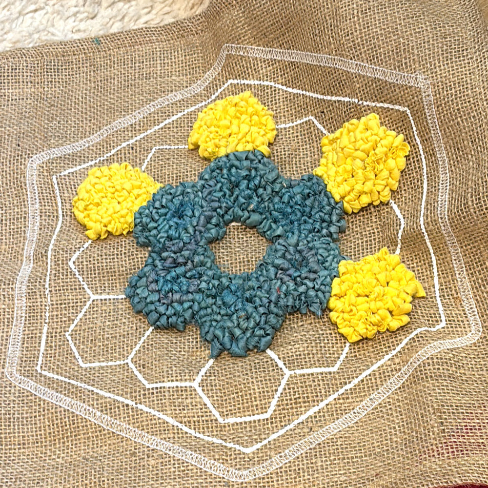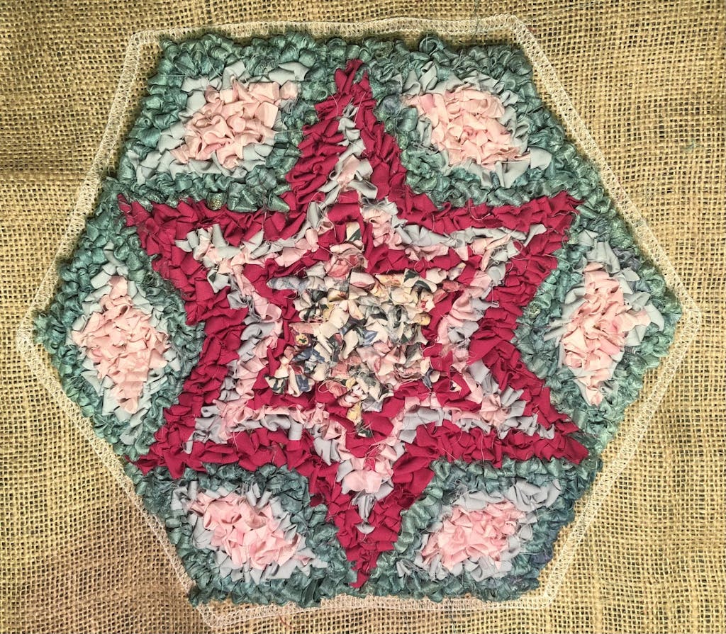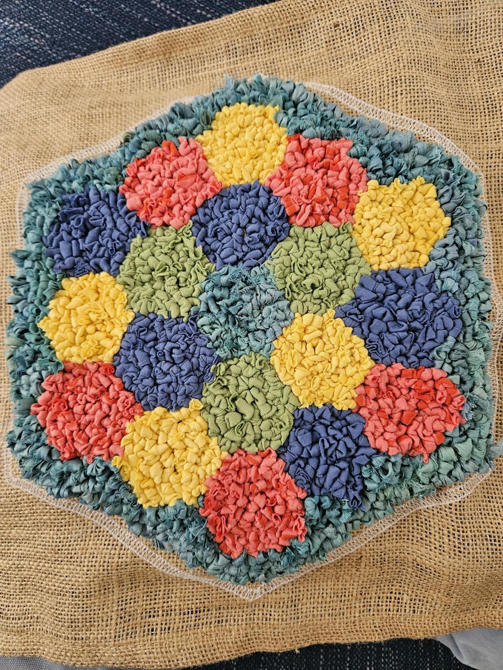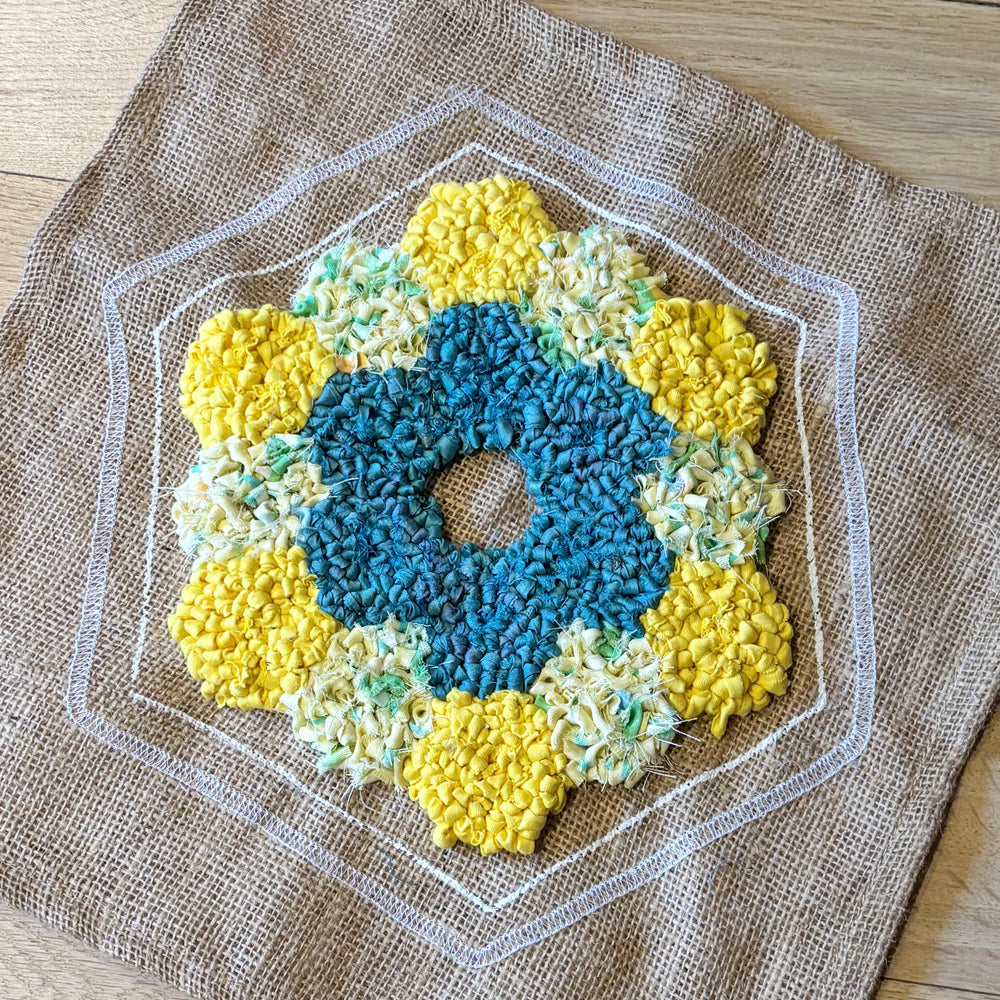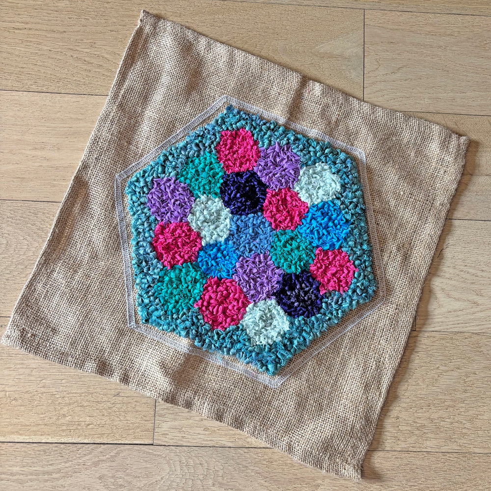 Rag rug your hexagon at home using your chosen technique.