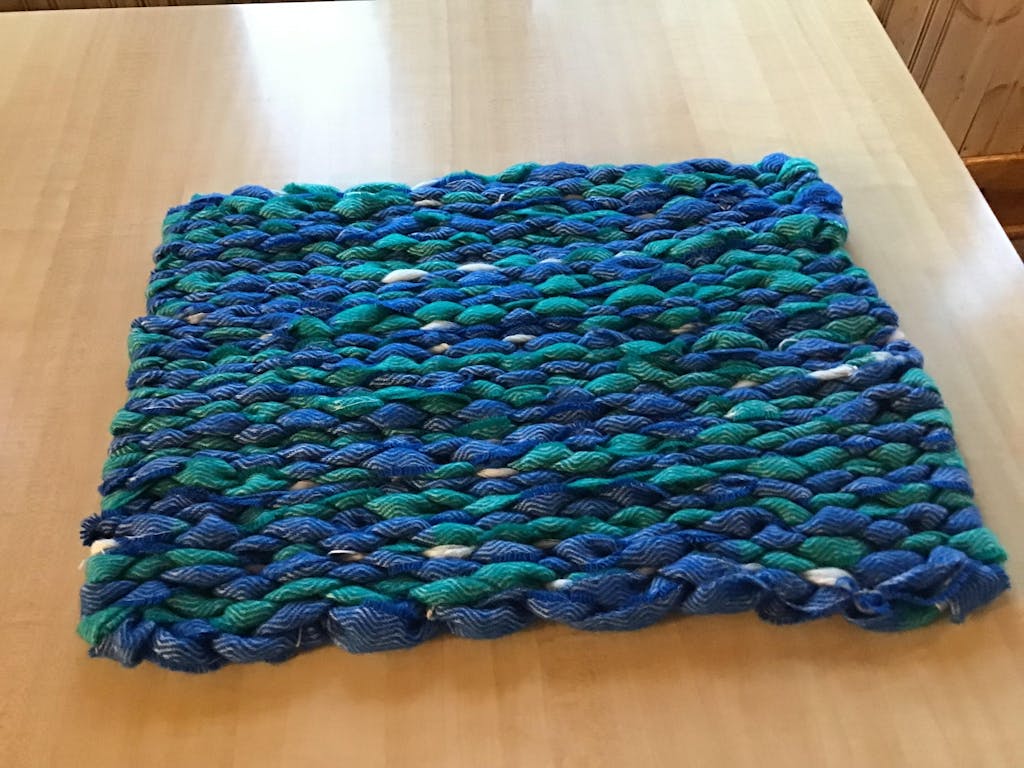 This kit includes three 250g balls of woollen blanket selvedges, which is enough to make a 98 x 48cm fully woollen rug, but you could also use the same yarns to make multiple smaller projects instead. On the 50cm peg loom included in this kit, you can weave anything up to 48cm in width and any length you like!